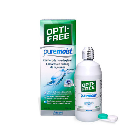 OPTI-FREE PureMoist es un producto para todas las lentes de contacto blandas, incluidas las de hidrogel de silicona. Gracias a su composición retiene la humedad en la superficie de la lente, proporcionando comodidad para los ojos incluso más sensibles hasta 16 horas. Además, limpia, desinfecta, hidrata, enjuaga y conserva las lentes de contacto blandas.
