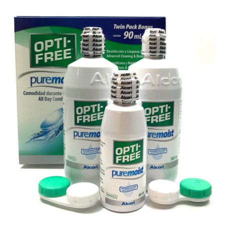 OPTI-FREE PureMoist es un producto para todas las lentes de contacto blandas, incluidas las de hidrogel de silicona. Gracias a su composición retiene la humedad en la superficie de la lente, proporcionando comodidad para los ojos incluso más sensibles hasta 16 horas. Además, limpia, desinfecta, hidrata, enjuaga y conserva las lentes de contacto blandas.